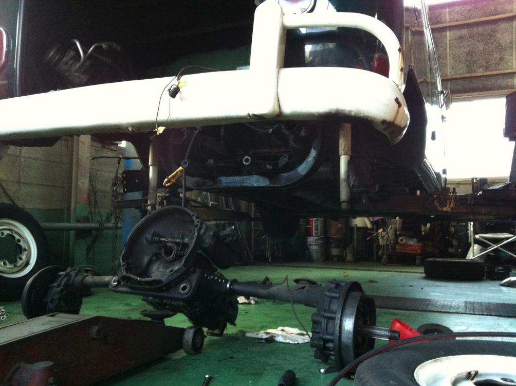 今では、スタンダードになってしまっている、ストレートアクスル化の作業です。